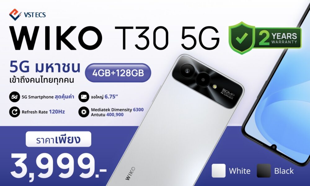 วีเอสที อีซีเอส (ประเทศไทย) เขย่าตลาดสมาร์ทโฟนไทย เปิดตัว WIKO T30 5G จัดโปรฯ แรง รับฟรี! อะแดปเตอร์ Belkin ยกเซตเพียง 3,999 บาท