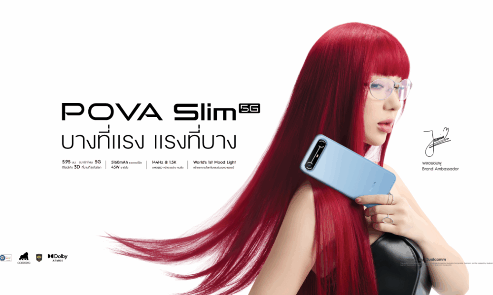 พร้อมเขย่าวงการ ! TECNO POVA Slim 5G สมาร์ตโฟน 3D Curved บางที่สุดในโลก ดีไซน์ล้ำอนาคตแบตอึด 5,160 mAh เพียง 8,999 บาท!!!