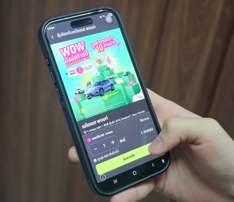 - ว้าวที่ 1 ลุ้นโชครางวัลใหญ่ส่งท้ายปี ประเดิมต้นเดือนธันวาคมกับความว้าวสายลุ้นโชค เพียงใช้ AIS Point 1 คะแนน แลก 1 สิทธิ์ ผ่านแอป myAIS เพื่อเข้าร่วมกิจกรรมลุ้นของรางวัลใหญ่ อาทิ รถยนต์, รถจักรยานยนต์, ทองคำ โดยสามารถแลกสิทธิ์ลุ้นโชคได้ตั้งแต่วันที่ 1 – 31 ธันวาคม 2568 กำหนดจับรางวัลในวันที่ 23 มกราคม 2569 และประกาศรายชื่อผู้โชคดีในวันที่ 6 กุมภาพันธ์ 2569 ผ่านทางเว็บไซต์ www.ais.th/consumers/privileges/points/pointsluckydraw