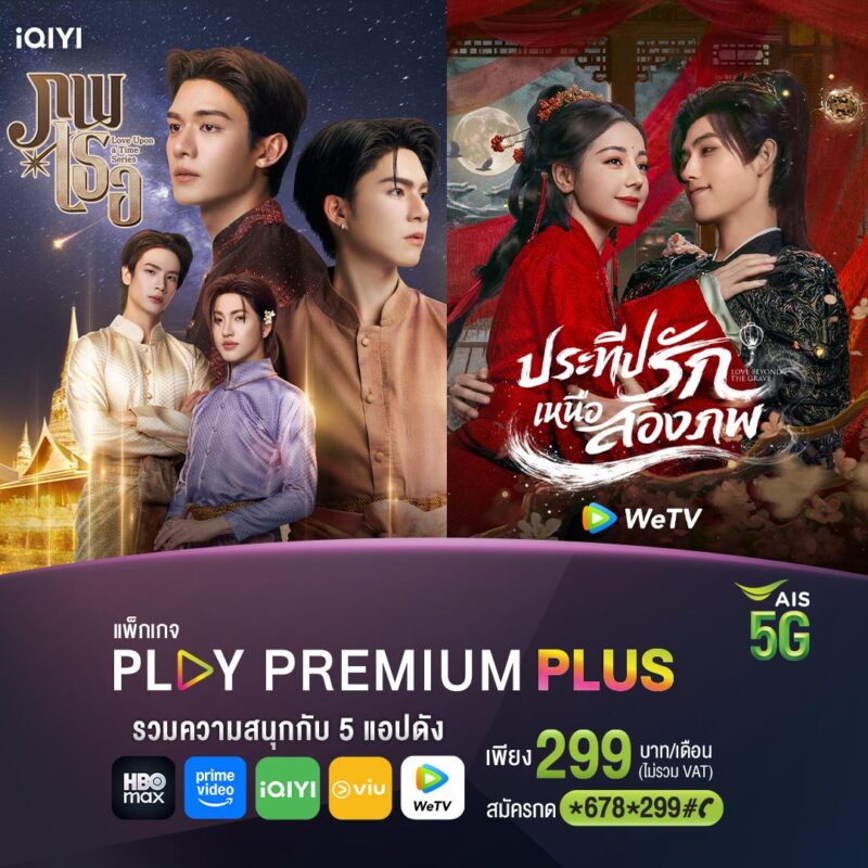 สำหรับลูกค้าที่เลือกพักผ่อนอยู่บ้านในช่วงสงกรานต์ AIS ชวนเปิดประสบการณ์ความบันเทิงแบบจัดเต็มผ่าน AIS PLAY กับแพ็กเกจคอนเทนต์พรีเมียม PLAY PREMIUM PLUS ที่รวมคอนเทนต์มากมายจากแพลตฟอร์มชั้นนำไว้ในแพ็กเดียว ทั้งซีรีส์ ภาพยนตร์ รายการวาไรตี้ และอนิเมะจาก HBO Max, Prime Video, iQIYI, Viu และ WeTV ในราคาเพียง 299 บาทต่อเดือน ให้สนุกได้เต็มอิ่ม ดูได้จุใจตลอดวันหยุดยาว ลูกค้าเอไอเอสมือถือ สมัครง่ายๆ เพียงกด *678*299# โทรออก ฟรี รวมถึงโปรเน็ตบ้าน AIS 3BB FIBRE3 พิเศษ! เฉพาะลูกค้า AIS 3BB Fibre3 เป็นเจ้าของ SMART SOUNDBAR ทันที เมื่อจ่าย 250 บาท/เดือน (จากราคาปกติ 350 บาท/เดือน) ครบ 24 เดือน* ให้สงกรานต์นี้เพิ่มความสนุก กันทั้งครอบครัว ได้มากขึ้นกว่าเดิม เที่ยวอุ่นใจ บ้านปลอดภัย เพียงสมัครเน็ตบ้าน รับฟรี! ประกันภัยบ้านMSIG พิเศษ! คุ้ม 2 ต่อ ต่อที่ 1 รับ E-Voucher 500 บาท (ส่วนลดใช้ซื้ออุปกรณ์กล้องที่ AIS Online Store) ต่อที่ 2 รับ E-Voucher Lazada 200 บาท