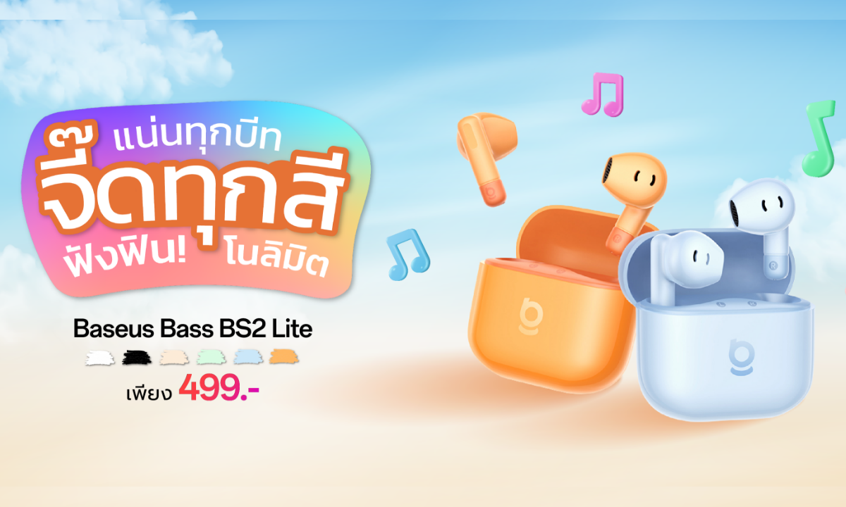 บริษัท ที แอนด์ ซี จำกัด ผู้นำเข้าและจัดจำหน่ายแบรนด์ Baseus (เบซุส) ได้พา Baseus Bass BS2 Lite หูฟังไร้สายสุดฮิตวางขายอย่างเป็นทางการ มาพร้อมจุดเด่นด้านดีไซน์สีสันสดใสโดนใจวัยรุ่น Gen Z โดยมีให้เลือกทั้งหมด 6 สี ได้แก่ Cosmic Black, Moon White, Galaxy Blue, Sunlight Pink, Sunset Orange และ Natural Green กับเสียงเบสแน่นทรงพลัง ใช้นานสูงสุด 40 ชั่วโมง ในราคาสุดคุ้ม เพียง 499 บาท
