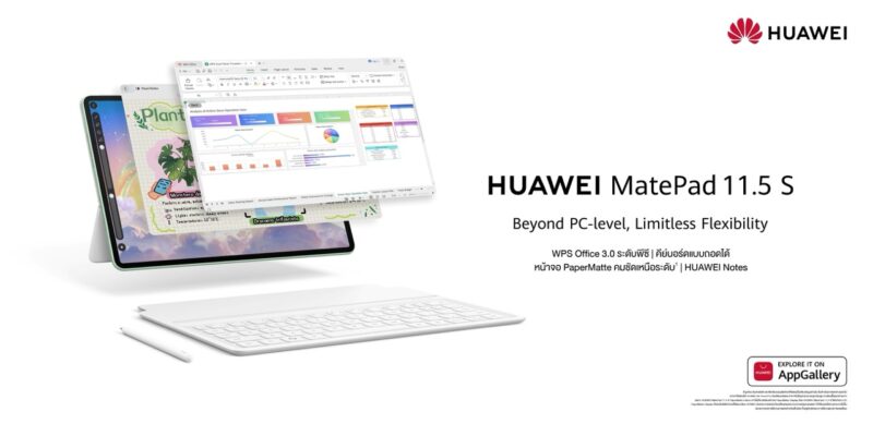 หัวเว่ย เปิดตัว HUAWEI MatePad 11.5 S 2026 ใหม่ แท็บเล็ตที่ตอบโจทย์การทำงานและการสร้างสรรค์ไปอีกขั้น ด้วยฟังก์ชันที่ครบครันแบบพีซี แต่พกพาสะดวกไปได้ทุกที่อย่างยืดหยุ่น ออกแบบมาอย่างลงตัวให้ปรับเปลี่ยนการใช้งานได้หลากหลายรูปแบบ ไม่ว่าจะเป็น Laptop Form ที่ใช้คู่กับคีย์บอร์ด, Split Form แบบแท็บเล็ต หรือ Studio Form เพื่อการสร้างสรรค์จึงตอบโจทย์ทุกสไตล์การทำงานการเรียนรู้และการสร้างสรรค์ของคนรุ่นใหม่ที่ไม่จำกัดอยู่เพียงแค่การจัดการเอกสารพร้อมเป็นแท็บเล็ตคู่ใจวัยเรียนและคนทำงานได้อย่างสมบูรณ์แบบเปิดมิติใหม่ของการทำงานและปลดปล่อยพลังสร้างสรรค์ได้อย่างไร้ขีดจำกัด