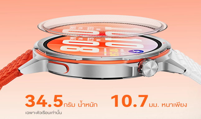 ตัวเรือนผลิตจากวัสดุไทเทเนียมเกรดอากาศยาน แข็งแกร่งแต่น้ำหนักเบาเพียง 34.5 กรัม (ไม่รวมสาย) เมื่อจับคู่กับสาย AirDry™ แบบถัก มีน้ำหนักรวมเพียง 43.5 กรัมเท่านั้น และดีไซน์ยังบางเพียง 10.7 มม. แนบรับข้อมืออย่างเป็นธรรมชาติ ลดแรงกระแทกและการเด้งขณะวิ่ง ใส่สบายและคล่องตัวตลอดวัน ให้คุณโฟกัสกับการฝึกซ้อมและทุกจังหวะของชีวิตได้อย่างเต็มที่