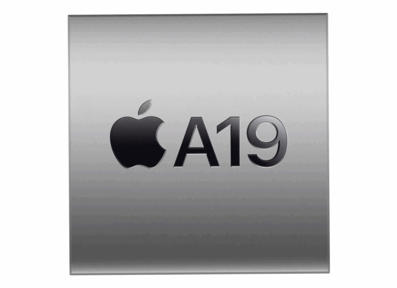 ชิป A19 เจเนอเรชั่นล่าสุดที่สร้างขึ้นโดยใช้เทคโนโลยี 3 นาโนเมตรสุดล้ำเพื่อประสิทธิภาพอันทรงพลัง CPU แบบ 6-core ที่เร็วขึ้นและมีประสิทธิภาพมากขึ้น ซึ่งเร็วกว่า iPhone 11 ถึง 2 เท่าสามารถรองรับทุกการทำงานตั้งแต่การเลื่อนดูภาพถ่ายไปจนถึงการใช้ความสามารถแบบล้ำๆ ของ Apple Intelligence เช่น คุณสมบัติลบออก (Clean Up) ในแอปรูปภาพ GPU แบบ 4-core พร้อม Neural Accelerators ช่วยปลดล็อคการเล่นเกมระดับคอนโซลที่ล้ำไปอีกขั้นที่คุณเข้าถึงได้ทุกที่ทุกเวลา รวมถึงรองรับเกมระดับ AAA ที่เน้นกราฟิกหนักๆ และใช้เรย์เทรซซิ่งที่เร่งความเร็วด้วยฮาร์ดแวร์เพื่อให้การตกกระทบและการสะท้อนแสงมีความถูกต้องสมจริงยิ่งขึ้น Neural Engine แบบ 16-core ที่อัปเกรดใหม่ได้รับการปรับมาให้เหมาะกับโมเดล Generative ขนาดใหญ่ และเมื่อนำมารวมกับ Neural Accelerators ที่อยู่ใน GPU แต่ละคอร์ ก็ยิ่งช่วยให้ Apple Intelligence และโมเดล AI อื่นๆ ทำงานได้รวดเร็วขึ้นเมื่อเทียบกับรุ่นก่อนหน้า