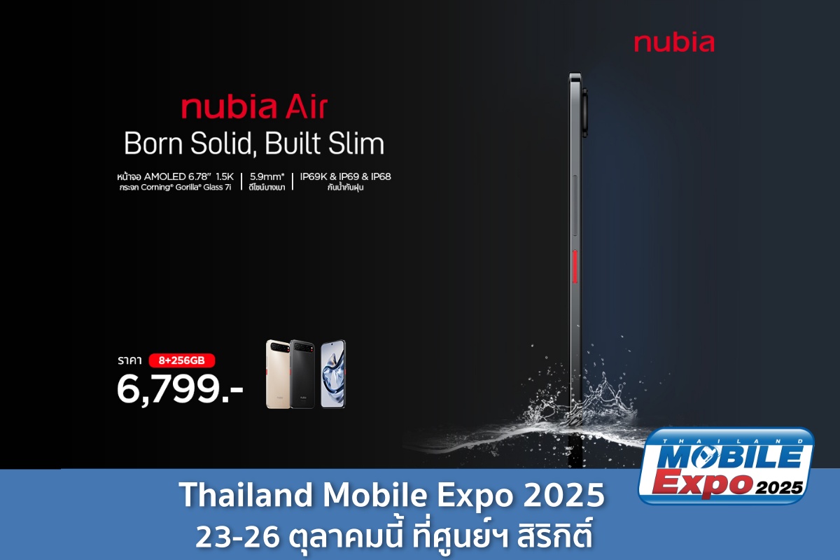 nubia ประกาศเปิดตัวสมาร์ทโฟนรุ่นใหม่ระดับโลก “nubia Air” นวัตกรรมที่พลิกแนวคิดเดิมของอุตสาหกรรม ด้วยการผสานระหว่างดีไซน์บางเฉียบระดับสุดขีดและแบตเตอรี่ขนาดใหญ่ที่ใช้งานได้จริงในชีวิตประจำวัน