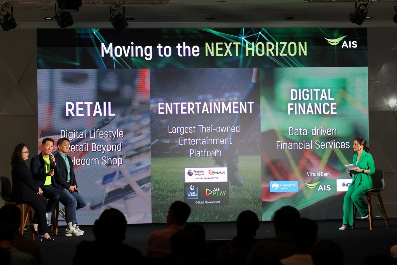 1.35 ปี แห่งการเติบโตทางธุรกิจ จากความแข็งแกร่งในธุรกิจหลักด้านโทรคมนาคมและอินเทอร์เน็ต ตลอด 35 ปีที่ผ่านมา วันนี้ เอไอเอสก้าวสู่การวิวัฒน์ใหม่ ขยายสู่อนาคตด้วย 3 เสาหลักธุรกิจ ได้แก่ Retail Tech ที่ยกระดับประสบการณ์ดิจิทัลไลฟ์สไตล์ครบวงจร, Entertainment Platform อย่าง AIS PLAY ที่รวมที่สุดแห่งความบันเทิงและกีฬา และ Digital Finance ขับเคลื่อนอนาคตการเงินดิจิทัลของประเทศ โดยจับมือ OR และ KTB เพื่อเตรียมร่วมขับเคลื่อนธุรกิจ Virtual Bank เปิดโอกาสให้คนไทยเข้าถึงบริการทางการเงินได้อย่างทั่วถึง สร้างอนาคตทางเศรษฐกิจที่มั่นคงและยั่งยืนให้กับสังคมไทย