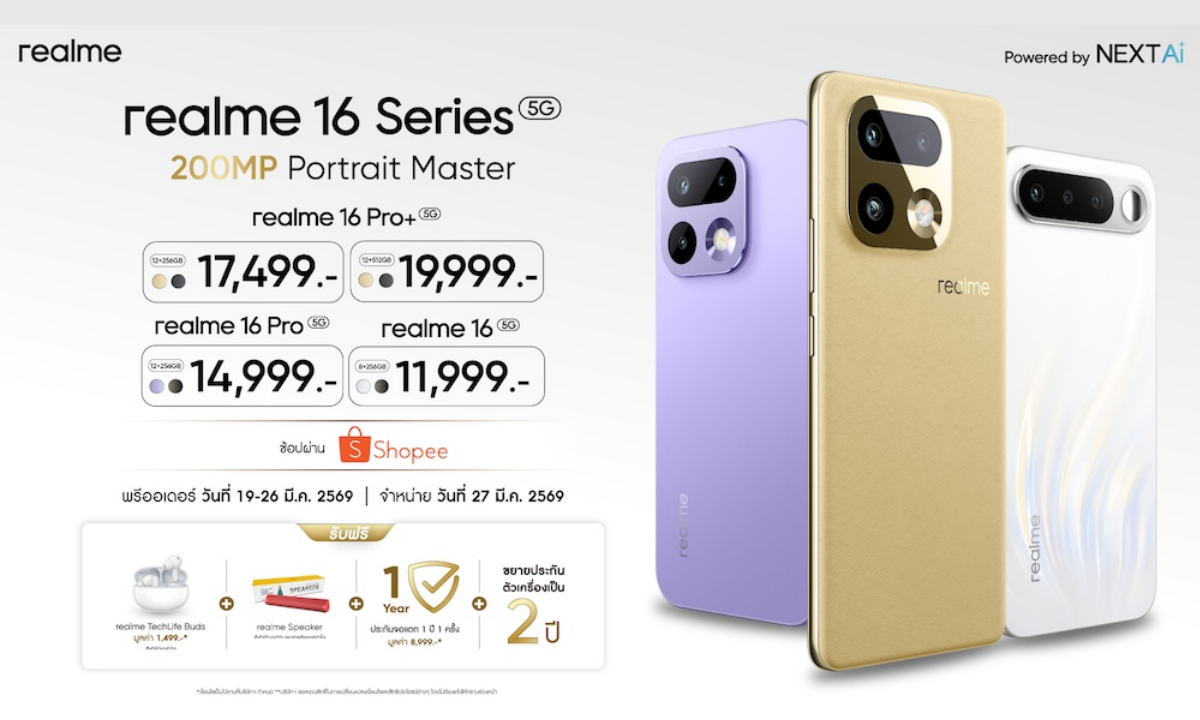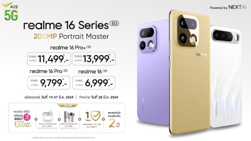 realme 16 Series 5G ถ่ายพอร์ตเทรตยุคใหม่ด้วยกล้อง 200MP LumaColor Portrait Master เริ่มต้นเพียง 11,999 บาท