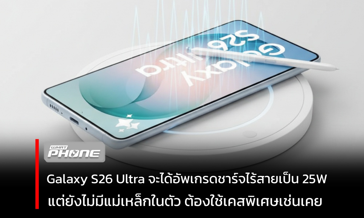 Samsung Galaxy S26 Series ทั้ง 3 รุ่น (S26, S26 Plus และ S26 Ultra) จะรองรับมาตรฐาน Qi 2.2.1 ที่ชาร์จไร้สายได้เร็วอย่างน้อย 20W โดยมีข่าวลือว่า S26 Ultra อาจชาร์จได้ถึง 25W ซึ่งถือเป็นการอัปเกรดเล็กน้อยเท่านั้น