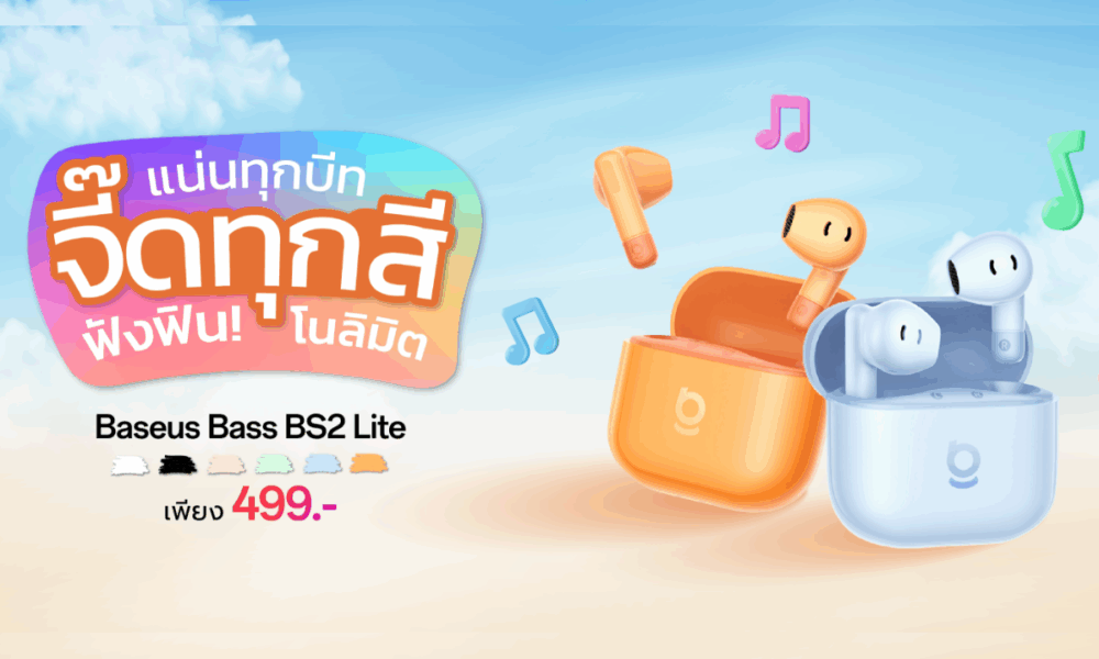 Baseus Bass BS2 Lite มีให้เลือก 6 สี Cosmic Black, Moon White, Galaxy Blue, Sunlight Pink, Sunset Orange และ Natural Green เพียง 499...